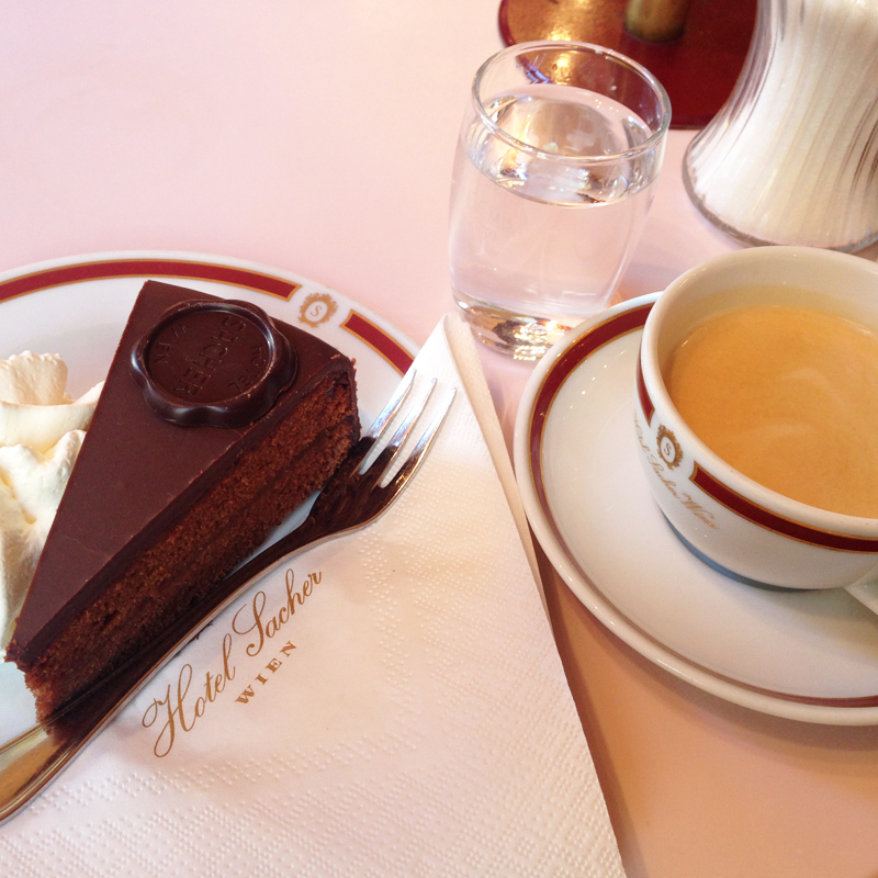ホテルザッハのオリジナルケーキとダブルエスプレッソコーヒー
