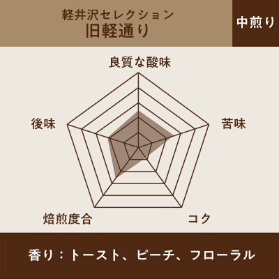 1952年(昭和27年)、軽井沢旧道店の開店時に生まれ、皆様にご愛飲いただいているロングセラー商品。上品な香り、コク、酸味とさりげない苦味を感じる贅沢なブレンドです。逸品と呼ぶにふさわしい一杯をどうぞ。