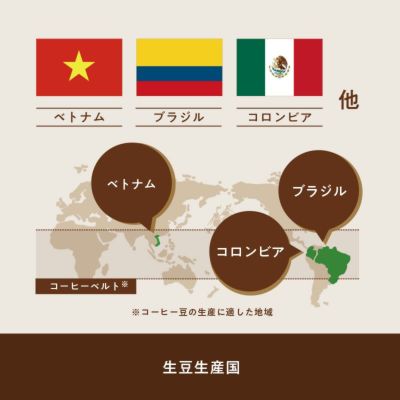 生豆生産国:ベトナム、ブラジル、コロンビア 他