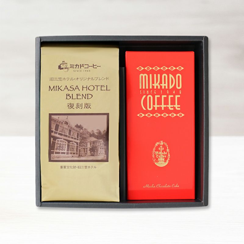 『旧三笠ホテル オリジナル・ブレンド』と『モカチョコケーキ』のセット。