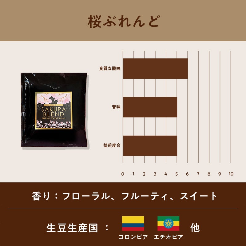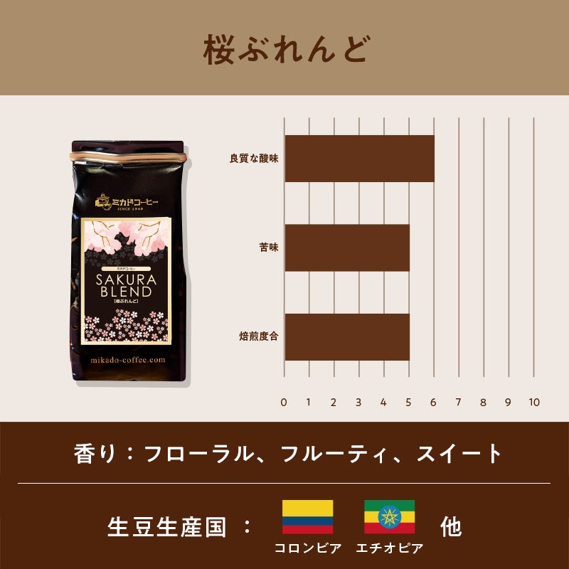 他の画像を見る 春をイメージした、華やかな口当たりと余韻 【数量限定】桜ぶれんど(豆・粉)100g クーポン対象 まとめ買い対象(3袋ごとに100円OFF) 販売価格 ¥ 1,850 税込 春をイメージした、甘くリッチな口当たりとビターな余韻、バランスがとれた柔らかな 酸味と甘味、そして持続性のある余韻が特徴のコーヒーです。毎年、桜の季節限定の大人気のブレンドです。 お気に入りに登録する