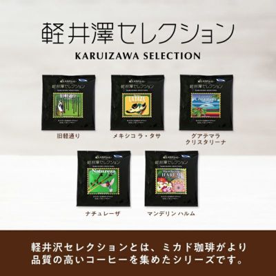 軽井沢で親しまれ、好評を博している『軽井沢セレクション』をアソートギフトにしました。お湯を注ぐだけで手軽にお楽しみいただける簡易ドリップ式になります。