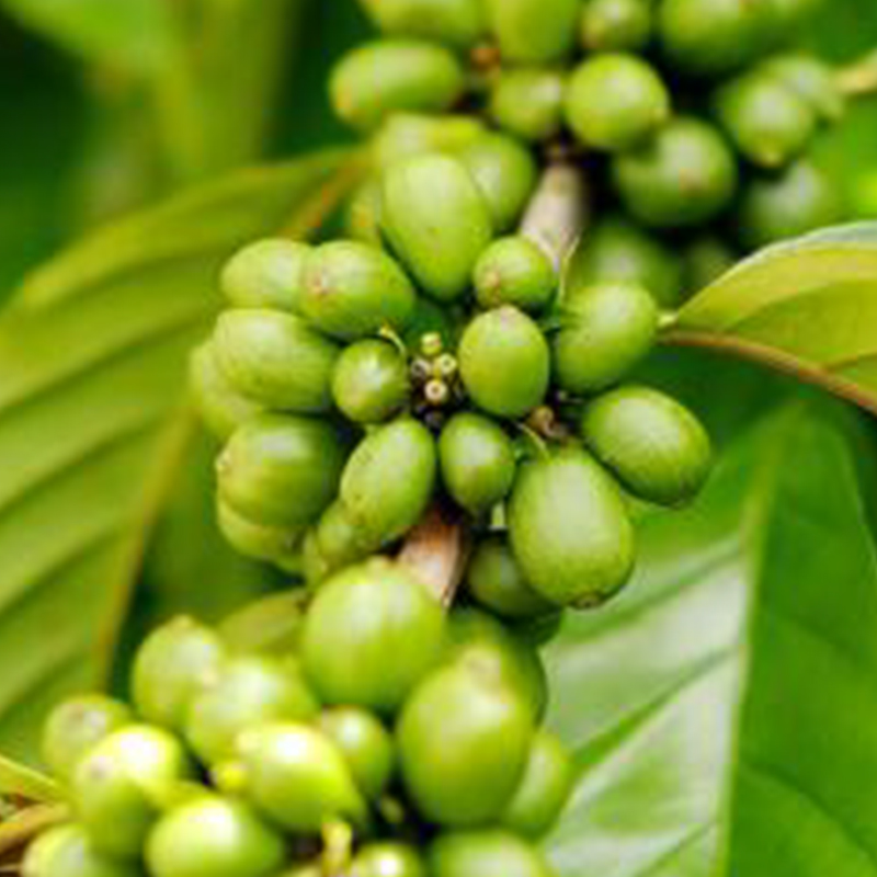 生育中のコーヒーの実。赤く完熟したら摘み取る