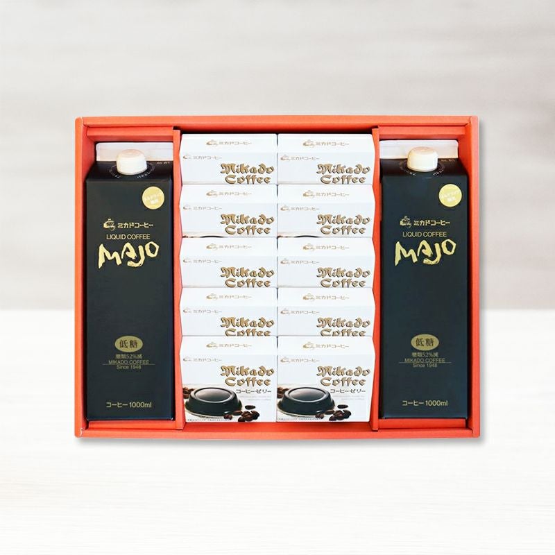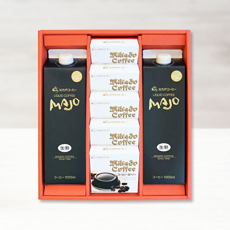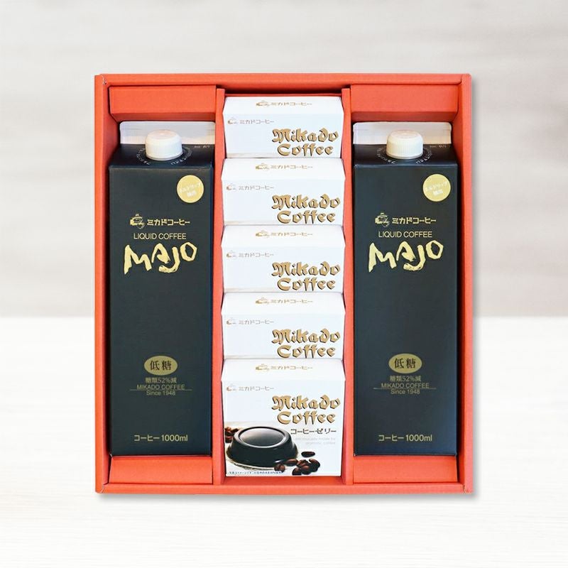 他の画像を見る コーヒーゼリー10個とMAJOリキッドコーヒー2本のギフト クーポン対象 販売価格 ¥ 5,400 税込 夏の大人気ギフト!コクのある【MAJOリキッドアイスコーヒー】、食べるコーヒーこと、とろける食感の【コーヒーゼリー】のギフトです。ミカド珈琲の味を心ゆくまでご堪能下さい。 お気に入りに登録する