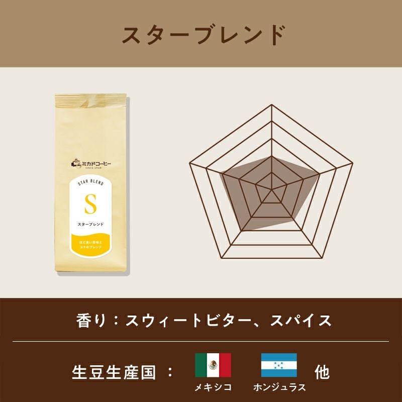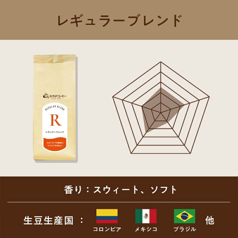 他の画像を見る 【他の商品と同時購入できます】【お1人様1回限りとなります】 ミカド珈琲の基本のブレンド3種 お試しセット レギュラーブレンド・スターブレンド・モカブレンド(粉)各100g クーポン対象 販売価格 ¥ 3,000 税込 マイルドで飲みやすいレギュラーブレンド、スイーツにぴったりのやわらかい苦味が心地よいスターブレンド、フルーティで華やかな香りのモカブレンド、ミカド珈琲の基本のブレンド3種類をお楽しみいただけます。 お気に入りに登録する