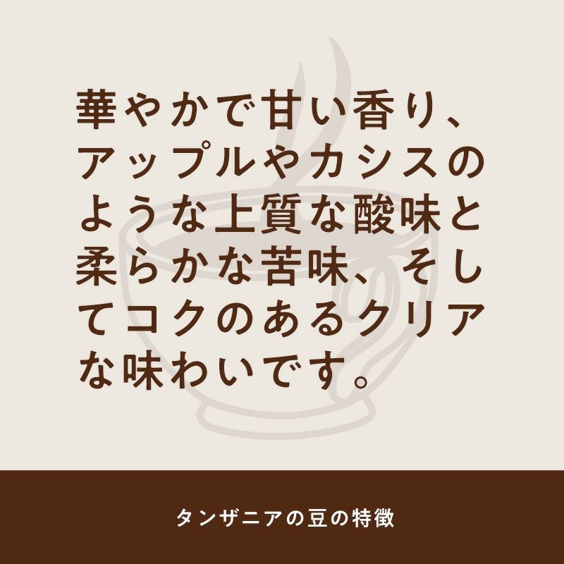 他の画像を見る 上質な酸味と柔らかな苦み タンザニア・キリマンジャロ(豆・粉)150g クーポン対象 まとめ買い対象(3袋ごとに100円OFF) 販売価格 ¥ 1,720 税込 華やかな香りと果実感のある上質な酸味、やわらかな苦味とコクのあるクリアな味わいです。1999年タンザニア・コーヒーコンクールで金賞受賞歴のある「モンデュール農園」の高品質なコーヒーを使用しています。 お気に入りに登録する