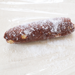 【下準備】 ① ボールに柔らかくしたバターを入れ、泡立て器でクリーム状にする。 ② 砂糖を3回に分けて入れ、白っぽくなるまでよく混ぜる。 ④ 粉類の三分の一をふるい入れ、粉っぽさがなくなるまで混ぜる。 ⑤ 残りの粉類とアーモンドを加え、ゴムベラに変えてねらないように粉っぽさが無くなるまで混ぜる。 ⑥ 生地を半分に分け、それぞれラップにのせて、約直径3センチの棒状に転がしてまとめる。 ⑦ 冷蔵庫で1時間ほど休ませる。 ⑧ 約8ミリ位の幅に切り分け、お好みで生地のまわりにグラニュー糖をまぶし、オーブンシートを敷いた天板に間隔を空けて並べて、10分から15分焼く。 ⑨ 焼き上がったら網に乗せて冷ます。 ※いっぺんに焼かない時はそのまま冷凍できます。 |