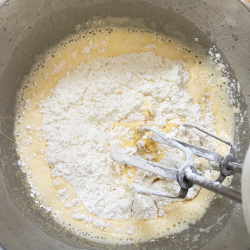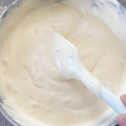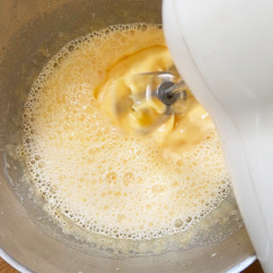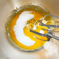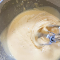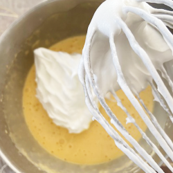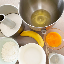 | 1. 小麦粉 2. 卵黄 3. 卵白 4. キャノーラ油 (サラダ油でも) 5. グラニュー糖 6. 水 7. バナナ 130g 5個 6個 100g 140g |