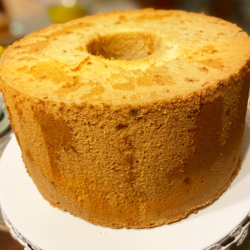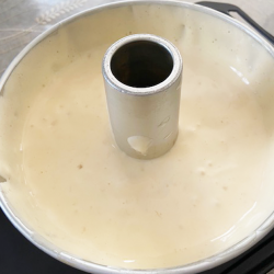 | ① ボールを2つ用意して、卵黄と卵白を分けておく。 ② 卵黄を軽くほぐし、グラニュー糖の半分を3回に分けて入れよく泡立てる。 ④ 潰したバナナも加えて混ぜる。 ⑤ 粉を一度に加え、グルテンが出るまでしっかり泡立てる。 ⑥ 別のボールの卵白を軽くほぐし、グラニュー糖を3回ぐらいに分け、軽く角が立つまで泡立てる。 ⑦ ⑤のボールに卵白の3分の1を入れ、混ぜ、さらに残りの卵白を入れ、白い筋がなくなるまで混ぜて、少し生地が緩むくらいでやめる。 ⑧ 何も塗ってない型に流し、軽くトントンと台に叩きつけ、大きな気泡を抜く。 ⑨ 予熱してあったオーブンに入れて40分から50分焼く。 ⑩ 焼き上がったらすぐに逆さまにしてよく冷ます。 ※ポイントは粉を入れてから、混ぜると言うより練るかんじでグルテンを出すこと! |