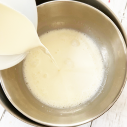 2. バニラビーンズ 3 . グラニュー糖 4. 粉ゼラチン 5. 水 6. 生クリーム 250g