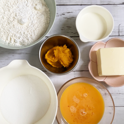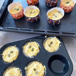① 柔らかくしたバターを軽く攪拌する。 ② グラニュー糖を加えよく混ぜる。 ④ 牛乳も加えて混ぜる。 ⑤一度に振るった粉類を加え、ゴムベラに持ち替えて、生地に艶が出るまで混ぜる。 ⑥ かぼちゃのペーストを混ぜ合わせる。 ⑦ カップに8分目まで入れ、かぼちゃの種を乗せて、180度で20分から25分焼く。 ⑧ お好きなトッピングを楽しんで下さい。 |